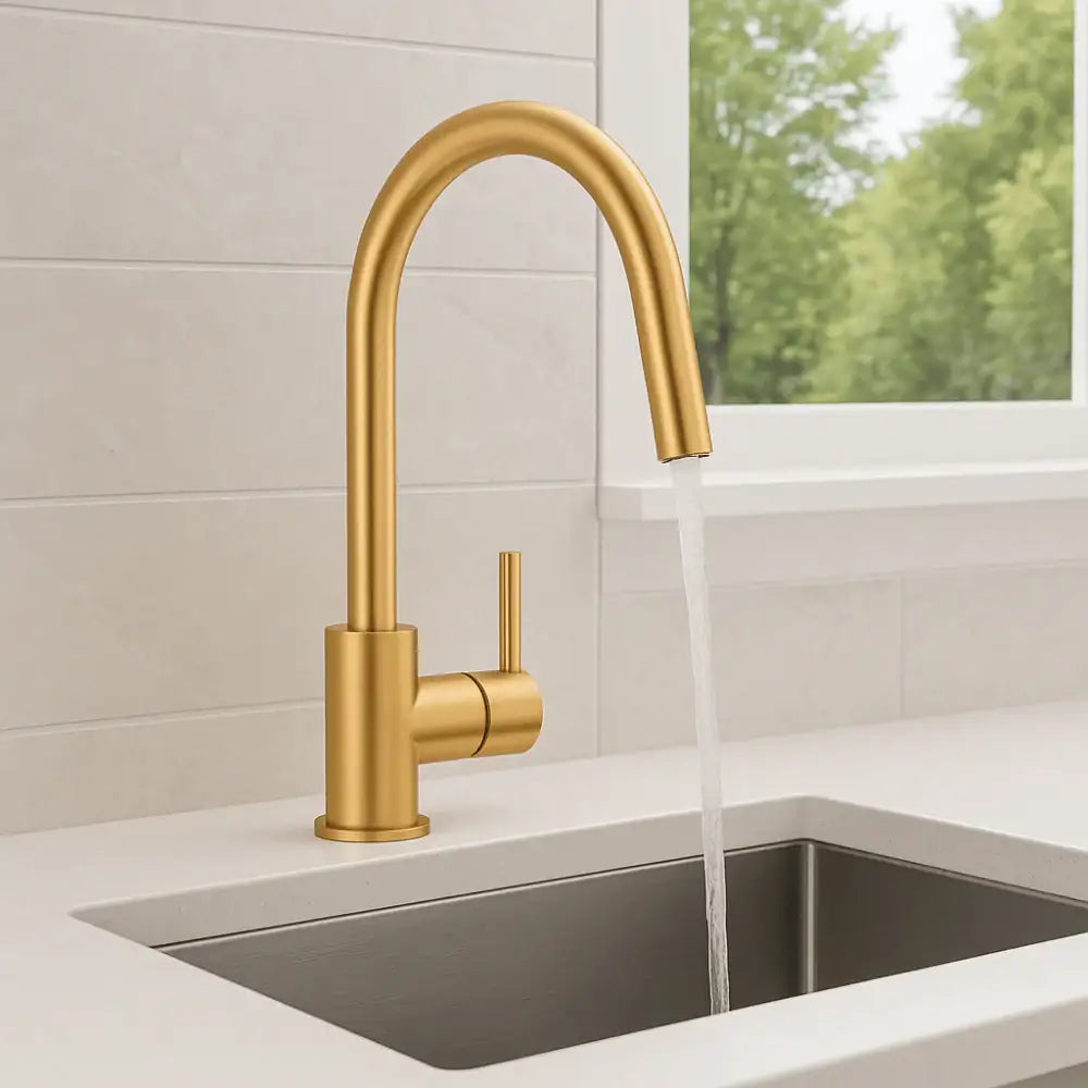 Robinet de cuisine à bec haut en or brossé – CULINA AURI GRIFERS